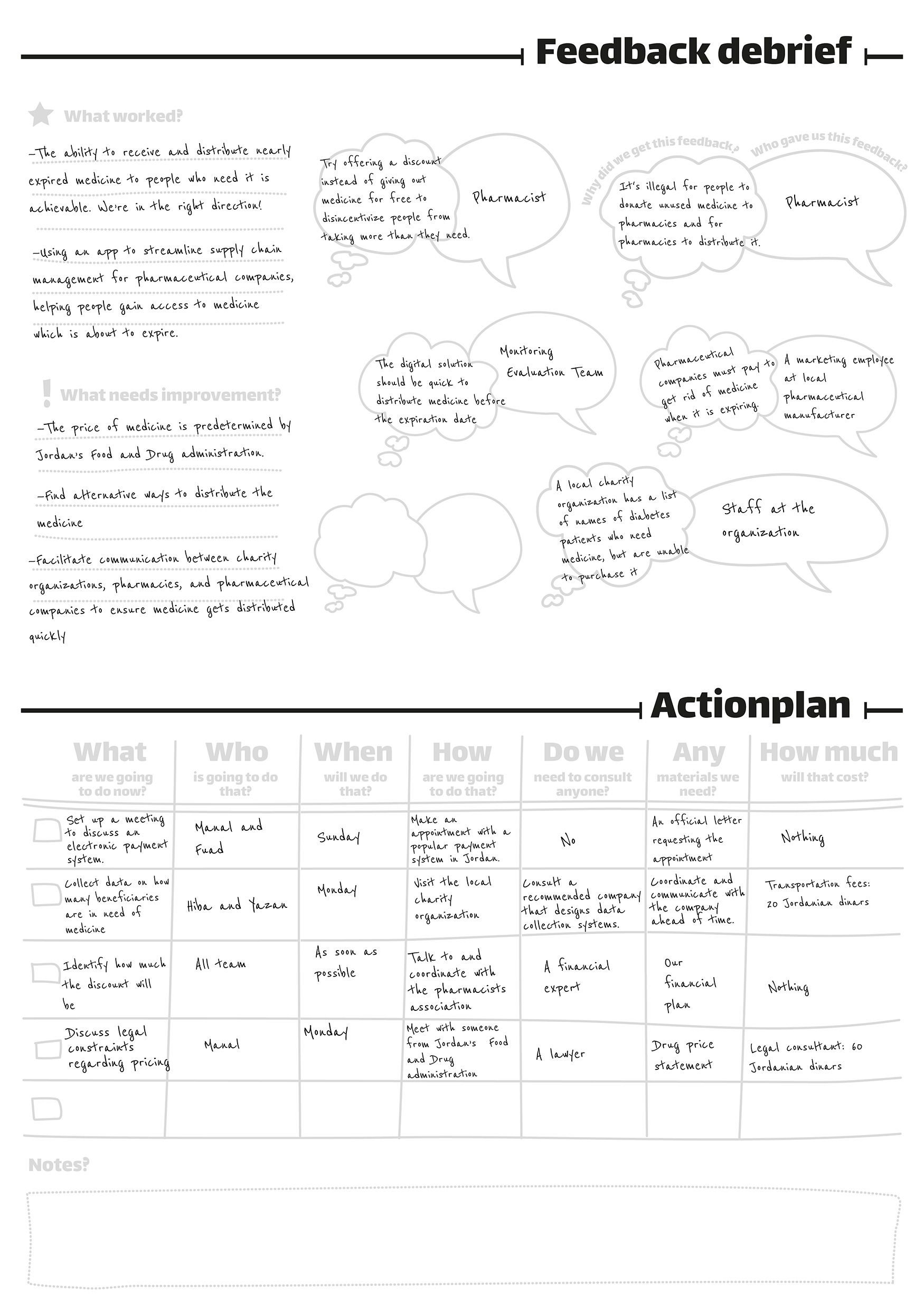 Due to the nature of the problem, the Medicine Bank team faced a number of institutional constraints for their solution and they had to get feedback from a range of legal experts, drug manufacturers, pharmacies, and patients who suffer from chronic illness. They would receive contradicting feedback and this tool helped the team find those common links.