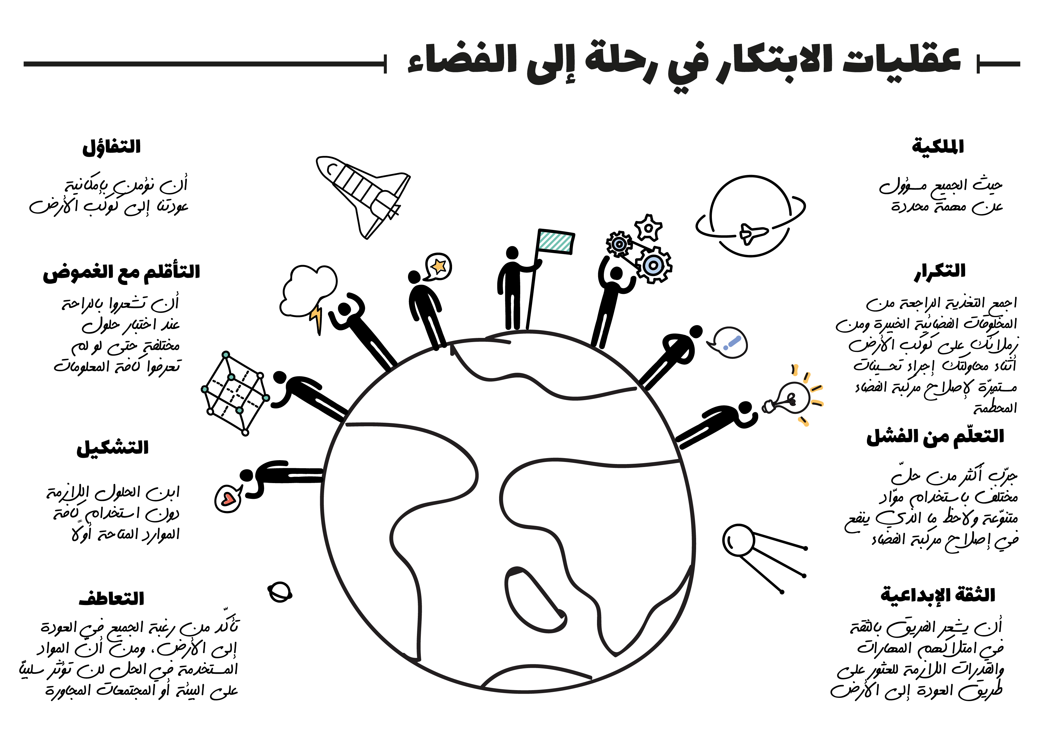 تأخذك هذه الأداة -أو مجموعتك- في رحلة إلى الفضاء، تخيّل أن مركبتك الفضائية قد تحطمت، وفكّر في التحديات التي قد تواجهها في مثل هذه الحالة وكيف يمكن لهذه العقليّات أن تساعدك في تخطيها.